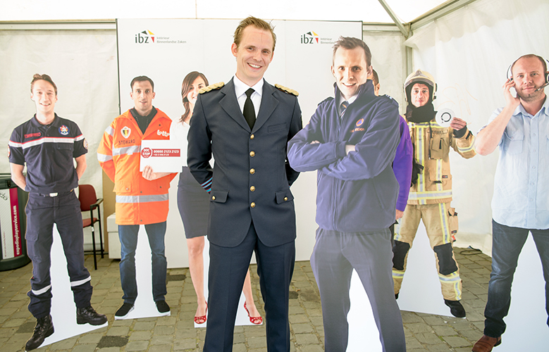 Affiche représentative des différents métiers de la sécurité sous la responsabilité du SPF Intérieur.